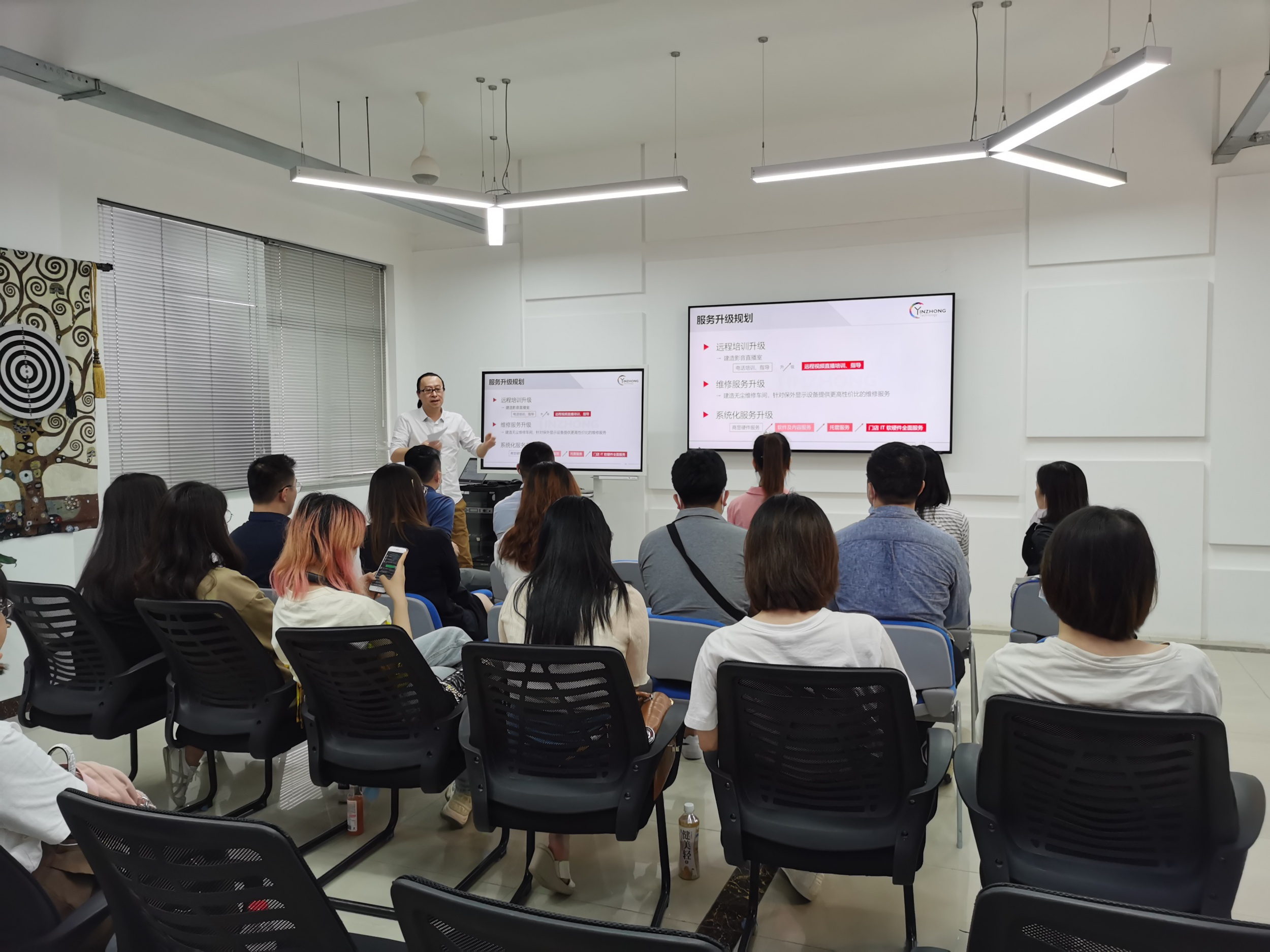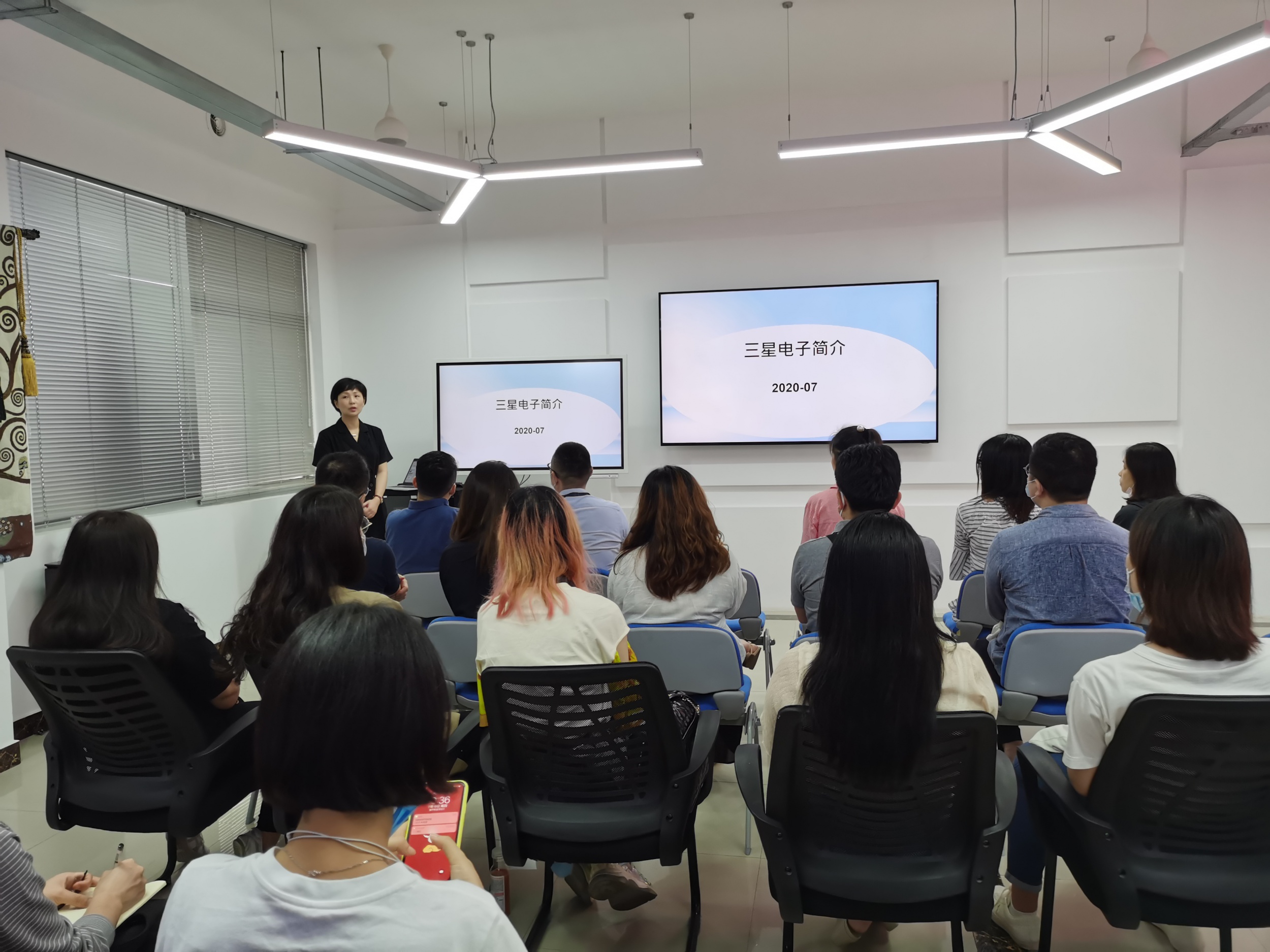 會(huì)上(shàng),三星電(diàn)子(zǐ)與星心相(xiàng)印的(de)各位負責人(rén)熱(rè)烈歡迎雅詩蘭黛的(de)各位來(lái)訪者,并向大→(dà)家(jiā)介紹了(le)星心相(xiàng)印的(de)服務與三星的(de)産品,分(fēn)享了(le)近(jìn)兩年(nián)業(yè)務上(shàng)的( de)細節和(hé)經驗及最新的(de)一(yī)些(xiē)解決方案