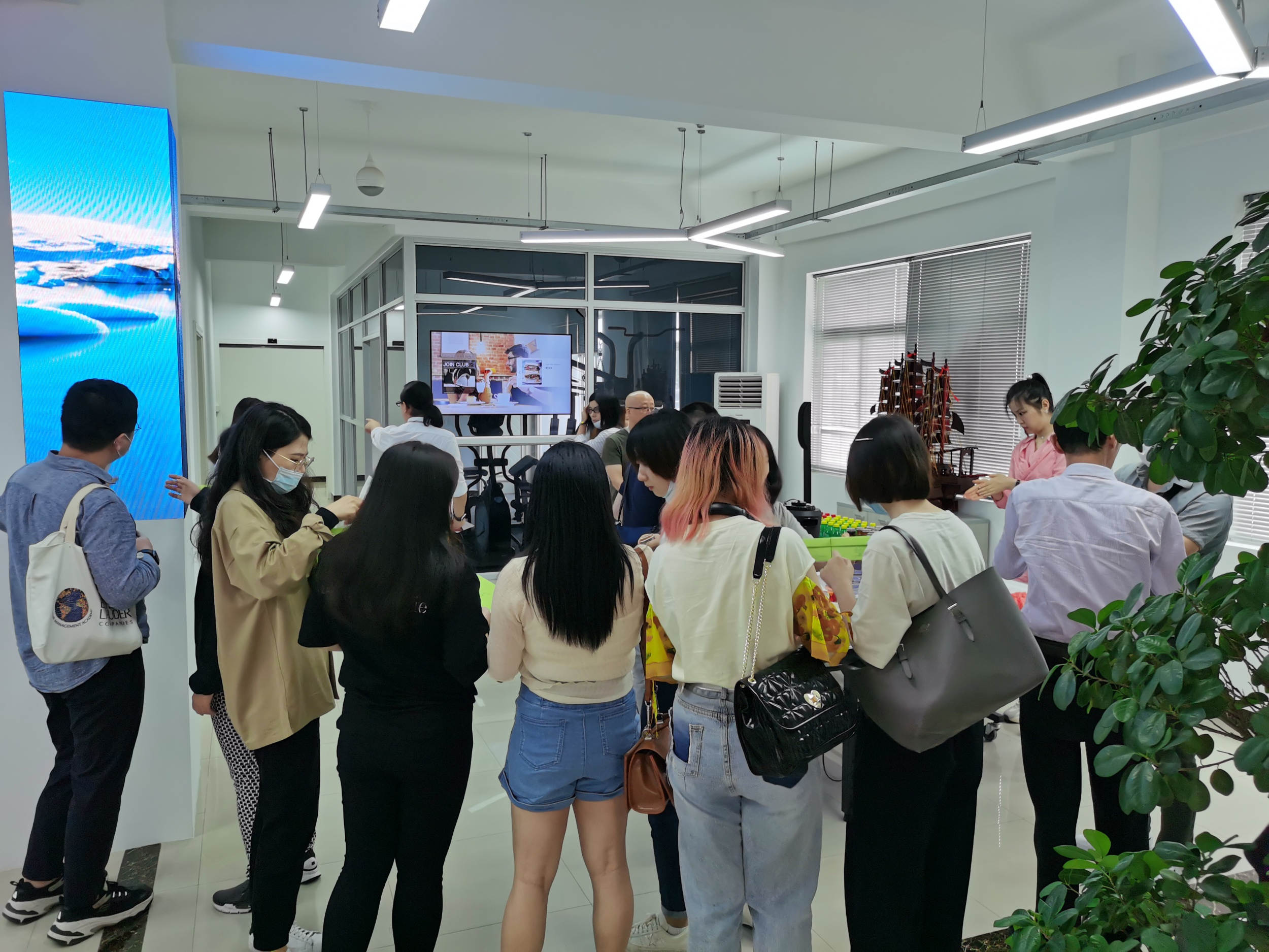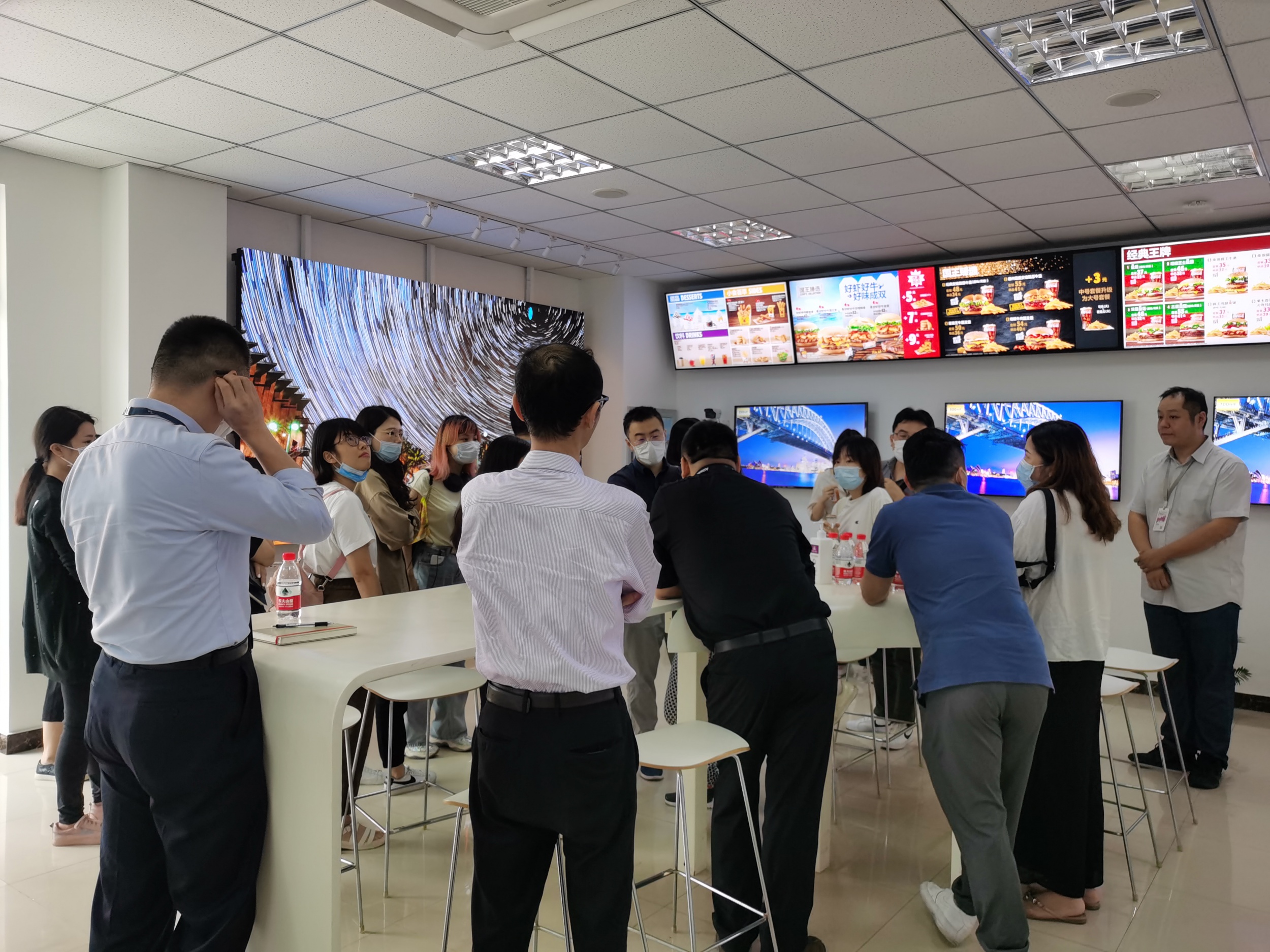 會(huì)後,各位來(lái)訪者參觀了(le)星心相(xiàng)印各層辦公樓及公司二樓客戶體(tǐ)驗館。在一(yī)樓預安裝室,Ω星心相(xiàng)印向大(dà)家(jiā)詳細介紹了(le)星心相(xiàng)印拷機(jī)、批機(jī)流程。二樓客戶體(tǐ)驗館內(nèi)₹,星心相(xiàng)印向大(dà)家(jiā)詳細介紹了(le)目前商顯行(xíng)業(yè)主流的(de)解決方案,如(rú)φ奔馳展廳解決方案、異型拼接方案、LED顯示屏、Video wall、人(rén)臉識别系統、自(zì)助點餐、叫号系統、香水(shuǐ)解決方案、互動投影(yǐng)、Ω電(diàn)子(zǐ)白(bái)闆、櫥窗(chuāng)互動解決方案等,并對(duì)比了(le)不(bù)同亮(liàng)度及不(bù)同精度的(de)顯示器(qì)δ之間(jiān)的(de)區(qū)别