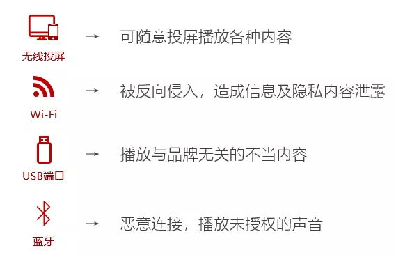 大(dà)部分(fēn)民(mín)用(yòng)設備無法關閉一(yī)些(xiē)有(yǒu)風(fēng)險的(de)端口,而商用(yòng)顯示器(qì)以下(x♠ià)端口不(bù)進行(xíng)管控極易造成嚴重的(de)信息安全事(shì)故!今天不(bù)關閉,明(míng)天事(shì)故就(jiù)可(kě)能(né♣ng)會(huì)找上(shàng)你(nǐ)!