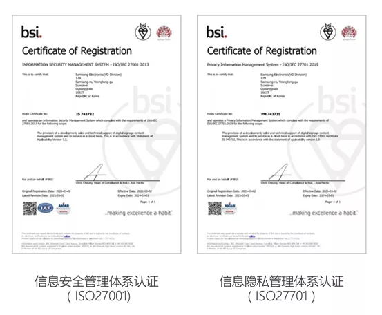 三星研發的(de)MagicINFO信發軟件(jiàn)就(jiù)具備了(le)這(zhè)些(xiē)關鍵要(yà≥o)素,它是(shì)業(yè)界領先的(de)同一(yī)品牌軟硬件(jiàn)一(yī)體(tǐ)化(huà)整體(tǐ)Ω信發解決方案,已獲得(de)ISO27001及ISO27701認證,從(cóng)設備段、服務器(qì)端、網絡層都(dōu)具備安全機(jī)制(zhì),确保數(shù)據傳輸加密安全、網絡Ω安全、壓力測試通(tōng)過。目前,三星MagicINFO信發系統已經被多(duō)家(jiā)知(zhī)名連鎖餐飲品牌及化(huà)ε妝品集團使用(yòng),使用(yòng)門(mén)店(diàn)超過10000家(jiā),經過廣泛的(de)使用(yòng)場(chǎng)景論證。