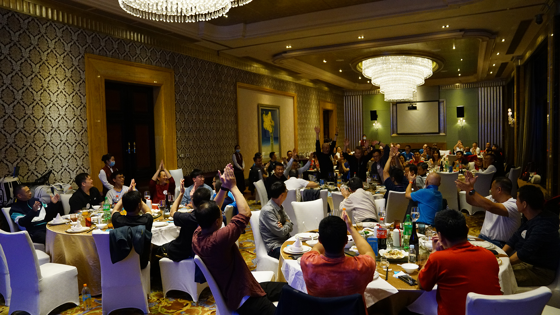 經過激烈角逐,團體(tǐ)賽冠亞季軍順利誕生(shēng)。頒獎晚宴上(shàng),大(dà)家(jiā)濟濟一(yī)堂,談笑(xiào)風(fēng)生(shēng),在中國(guó)人(rén)壽的(de)大(dà)力支持下(xià),星心相(xiàng)印還(hái)為(wèi)各位球友(yǒu)準備了(le)幸運抽獎。各個(gè)球隊代表也(yě)上(shàng)台與主辦方和(hé)協辦方一(yī)起舉杯共祝,大(dà)家(jiā)一(yī)起同樂(yuè)。觥籌交錯(cuò)間(jiān),各位球友(yǒu)共同度過了(le)一(yī)個(gè)美(měi)好(hǎo)的(de)夜晚。