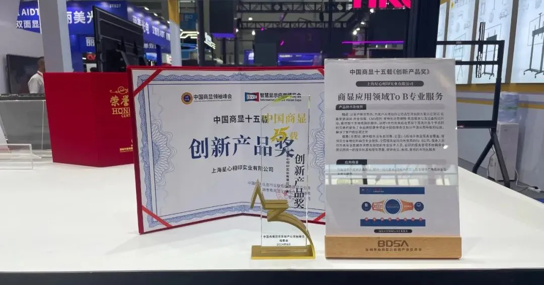 8月(yuè)27-29日(rì),星心相(xiàng)印應邀出席第十五屆中國(guó)商顯産業(yè)領袖峰會(huì)暨第六屆深圳智慧顯示展。憑借商顯領域創新的(de)全國(guó)軟硬件(jiàn)一(yī)站(zhàn)式服務獲得(de)了(le)創新産品獎并針對(duì)行(xíng)業(yè)內(nèi)卷的(de)現(xiàn)狀做(zuò)了(le)主題λ演講。