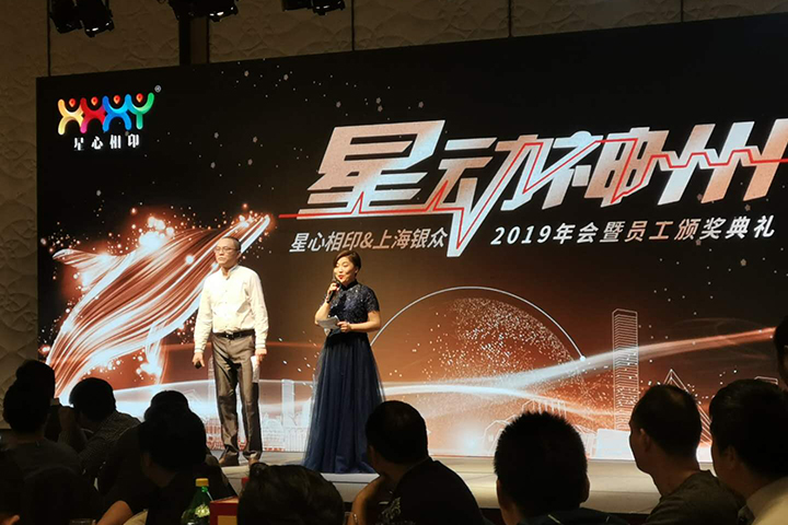 晚上(shàng),星心相(xiàng)印&銀(yín)衆年(nián)度盛典暨頒獎晚會(huì)在水(shuǐ)月(yuè)周莊鉑爾曼酒店(diàn)宴會(huì)廳舉辦。公司同仁及特邀嘉賓相(xiàng)聚一(yī)堂,一(yī)起回顧了(le)2018年(nián)的(de)十大(dà)事(shì)件(jiàn),大(dà)家(jiā)都(dō u)不(bù)由地(dì)為(wèi)公司、為(wèi)同仁倍感驕傲。